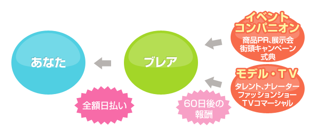 イベントコンパニオン、モデルのお仕事でブレアは一番高いギャラを保証します!他社でブレアより高いお仕事があった場合、教えてください。ブレアはそれ以上のギャラをお支払いします!